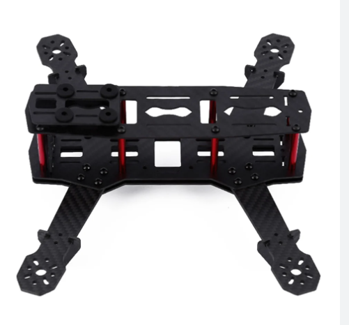 The Q250 is a mini-size quadcopter frame . The Q250 Quadcopter Frame is known for its simple and compact design. The special thing about this frames design is it features red and white fiberglass arms which have a downward angle design.